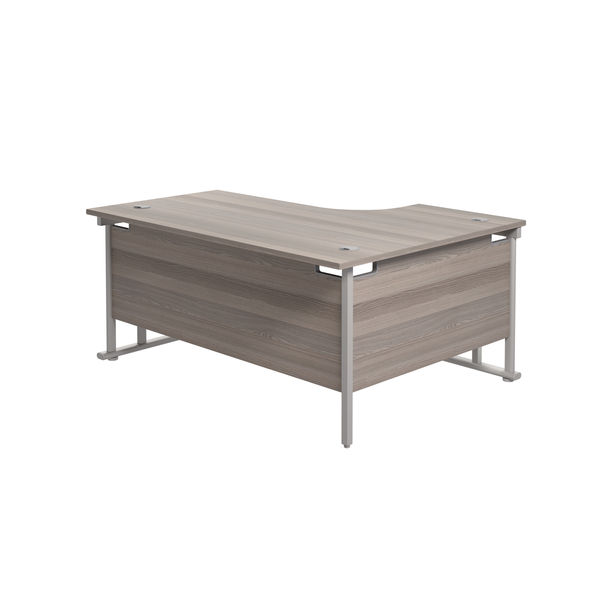 Jemini W1600 x D600/800 x H730mm Cantilever Left Hand Radial Desk in Grey Oak and Silver