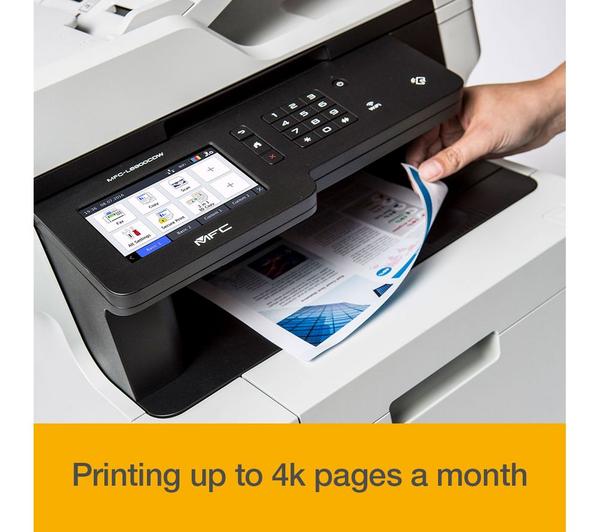All-in-One printer The Brother MFC-L8690CDW All-in-One Wireless Laser Printer with Fax does just about everything. You can print, copy, scan, fax – and this can all be done wirelessly. Perfect for a small office that doesn't have space for multiple machines, you can print from or scan to PCs, smartphones, and tablets. Fast printing You can print a whole stack of documents in no time, with a print speed of 31 pages per minute. That means the Brother MFC-L8690CDW Laser Printer takes less than two seconds to print each page, even in full colour. Computer-less scanning You don't even need to turn on a computer to print something out. You can scan files and send them directly to OneNote, Dropbox, email, or SharePoint. You can even post photos directly from the Brother MFC-L8690CDW to your Facebook. Touchscreen controls With so many options, easy controls are a must. The sizable 3.7" touchscreen provides a simple way to select the functions you need.
